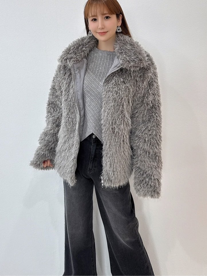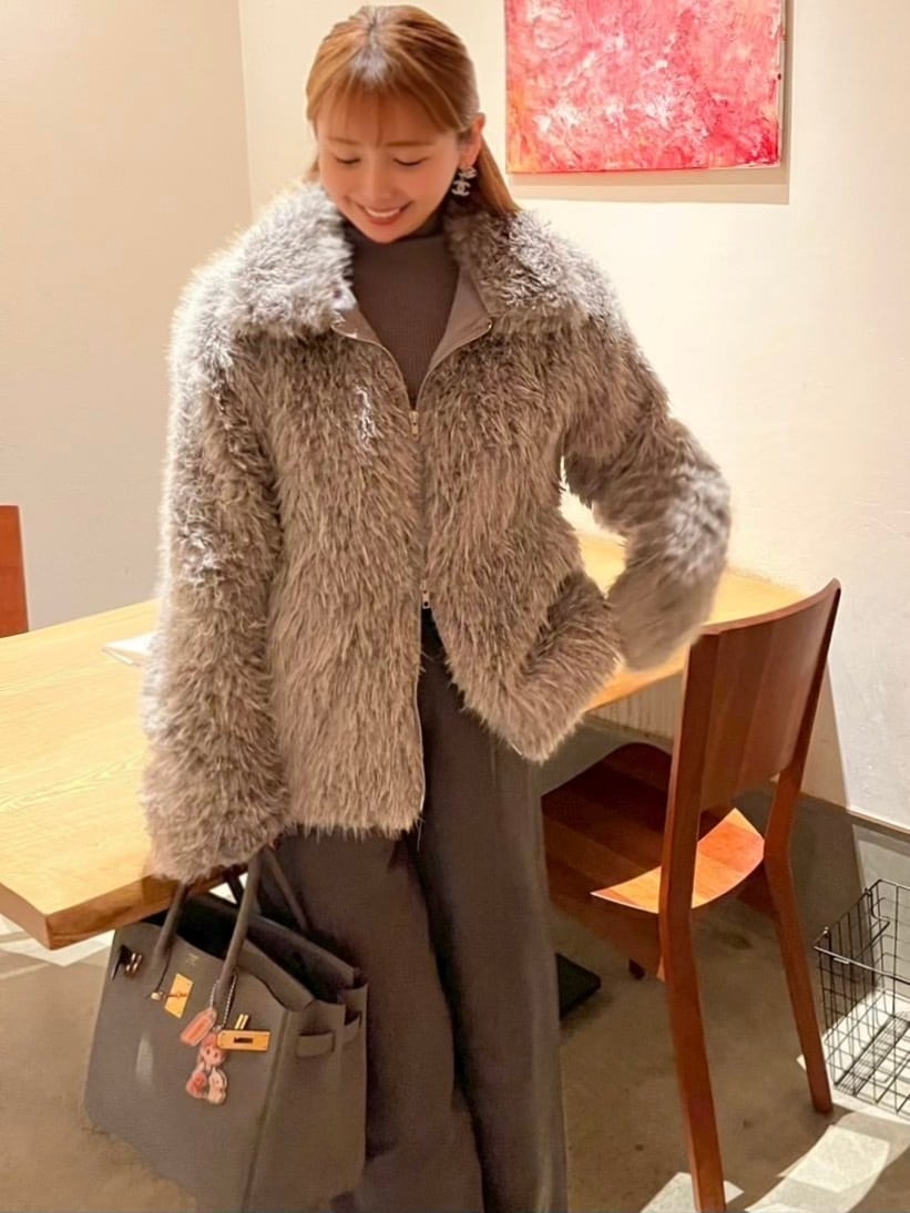 目を惹くフェイクファーブルゾン♡