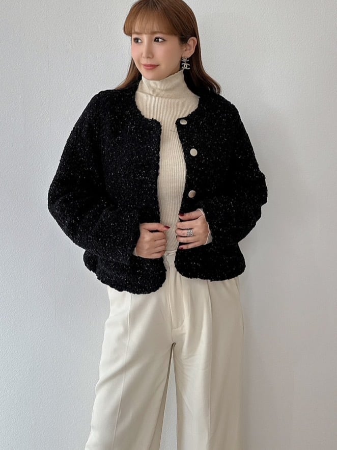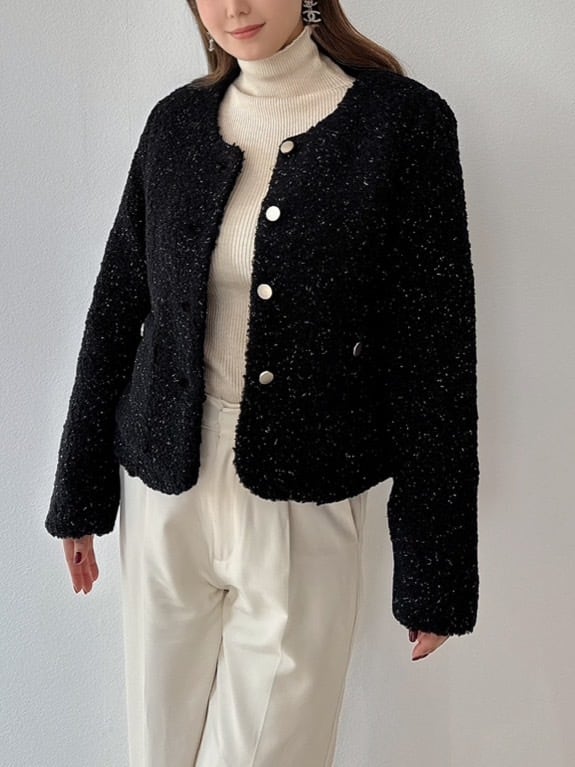 ツイードジャケットを思わせる上品なデザインながら、