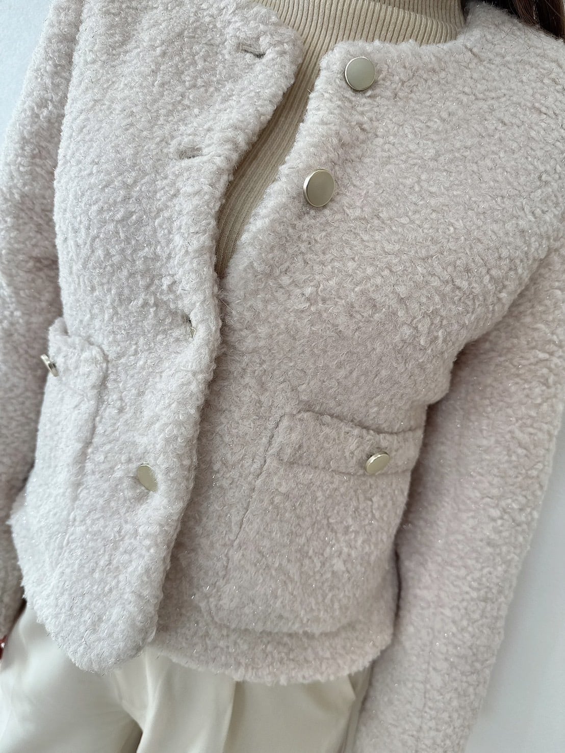 ボアの中にさりげないラメがきらっと光る、