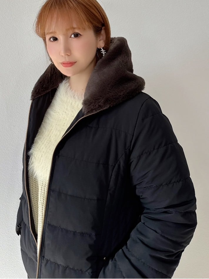 ふんわりと首元を包み込むファーが