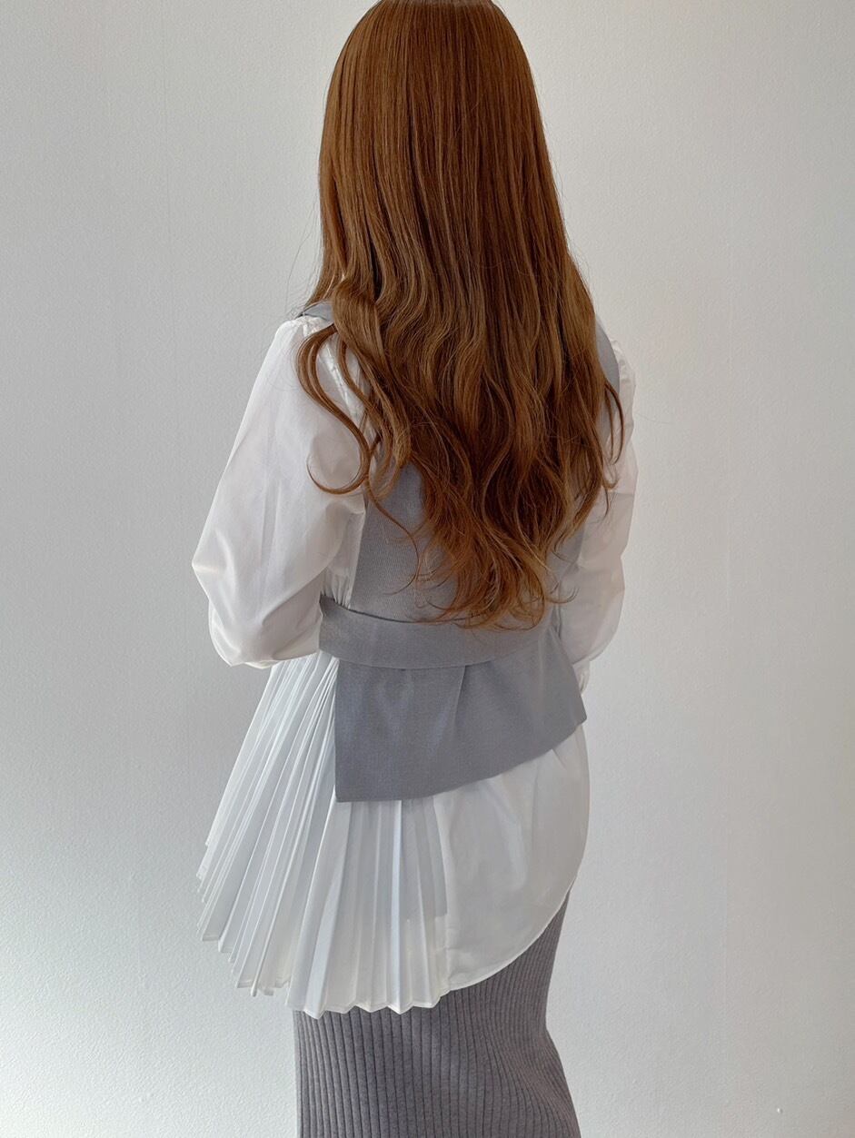 さらに、プリーツブラウスとのレイヤードで