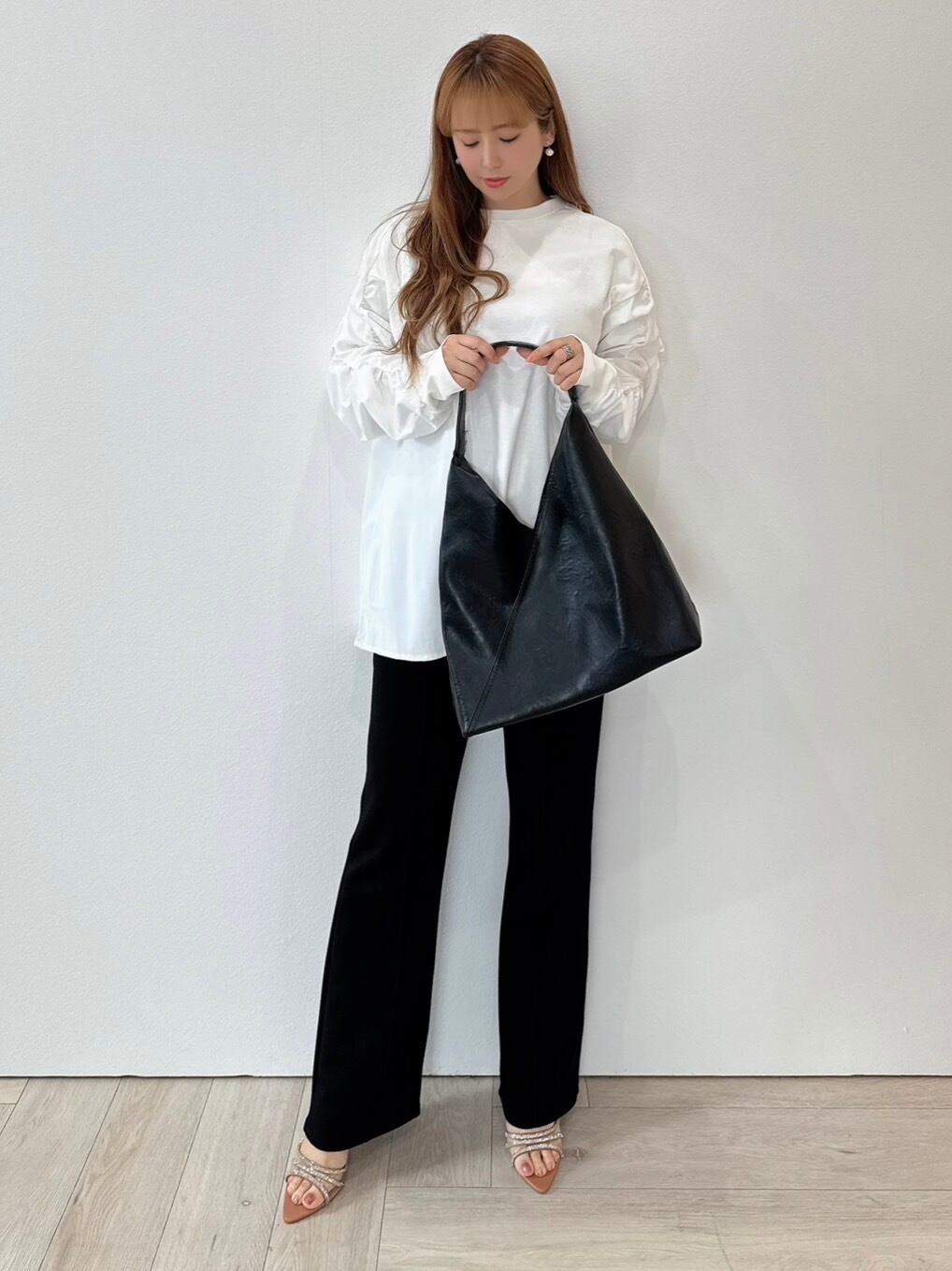 トライアングルステッチショルダーバッグ。