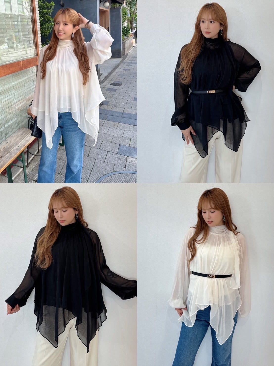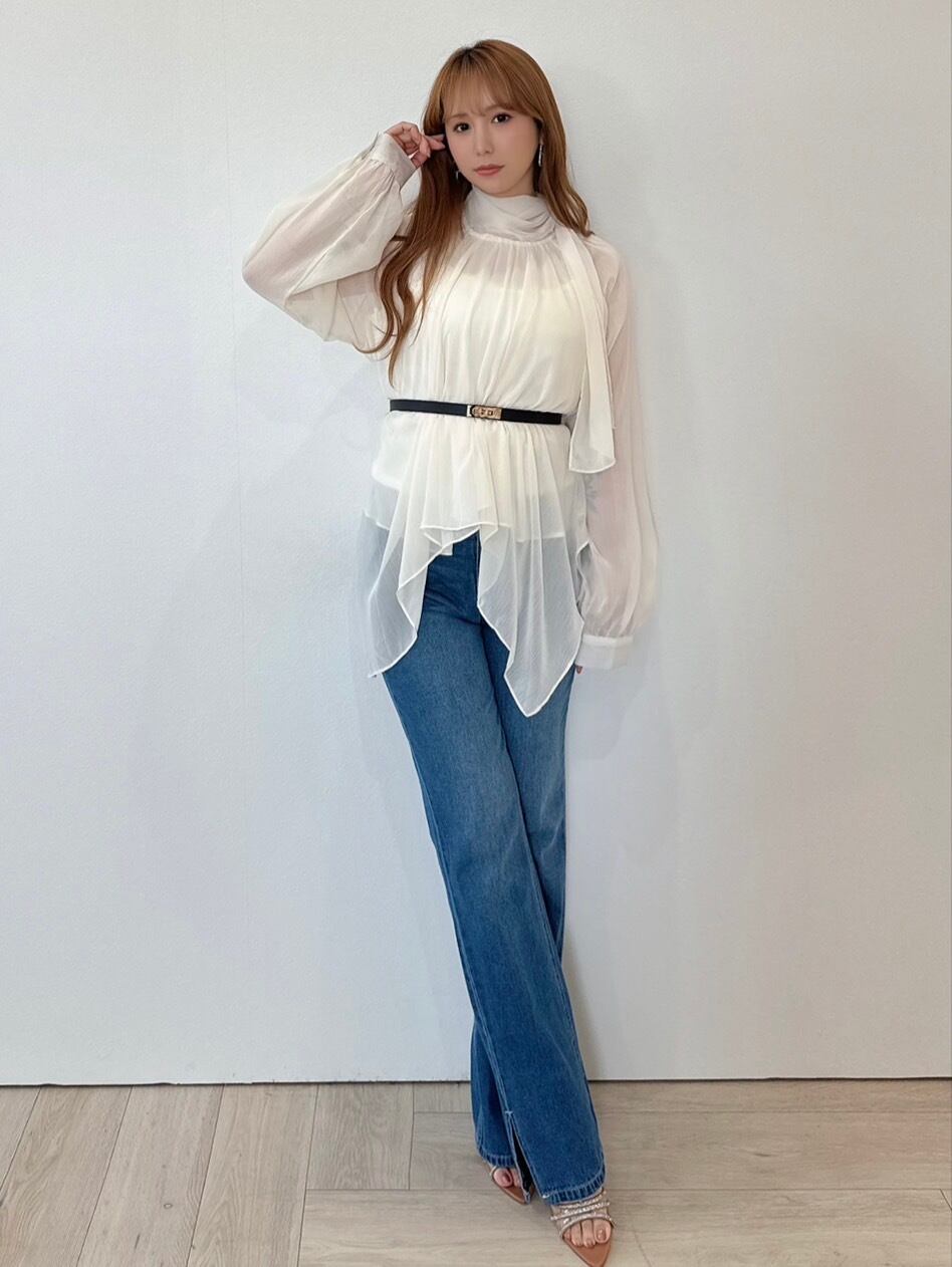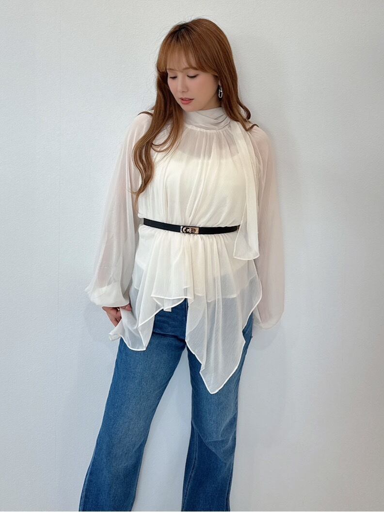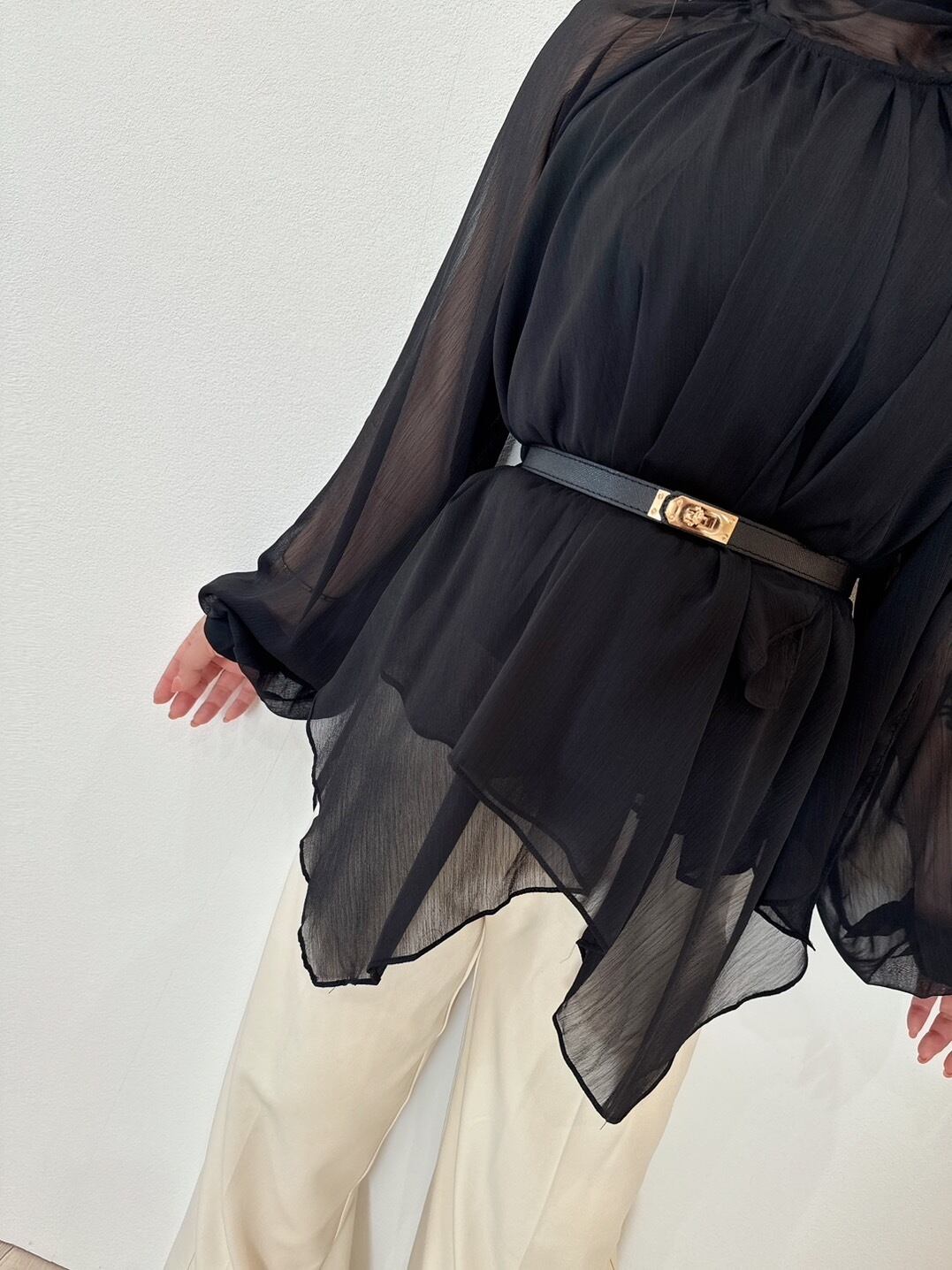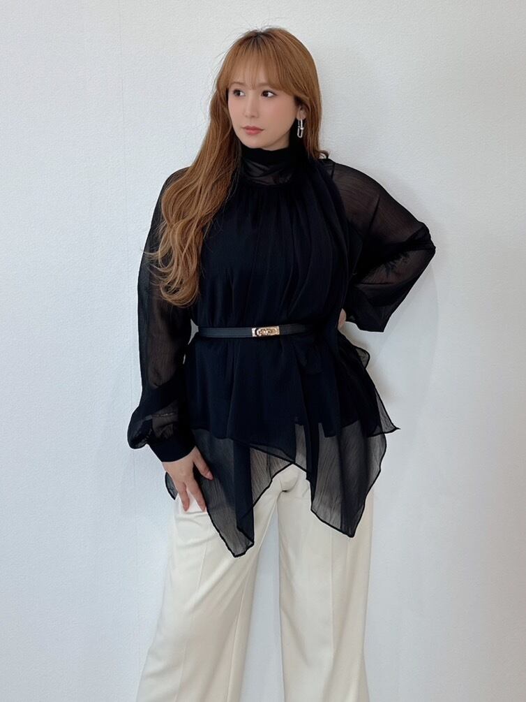 上品シフォンドレープチュニック×ベルト付き ¥6,900+tax