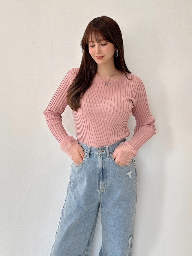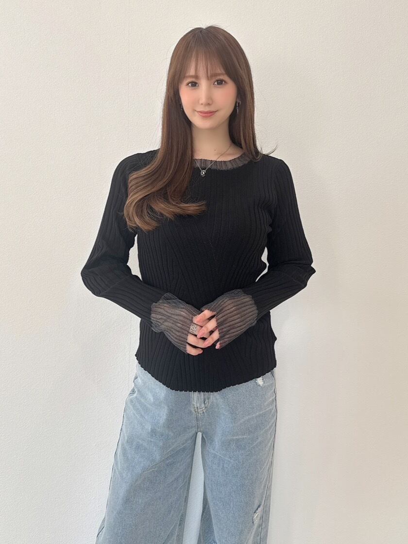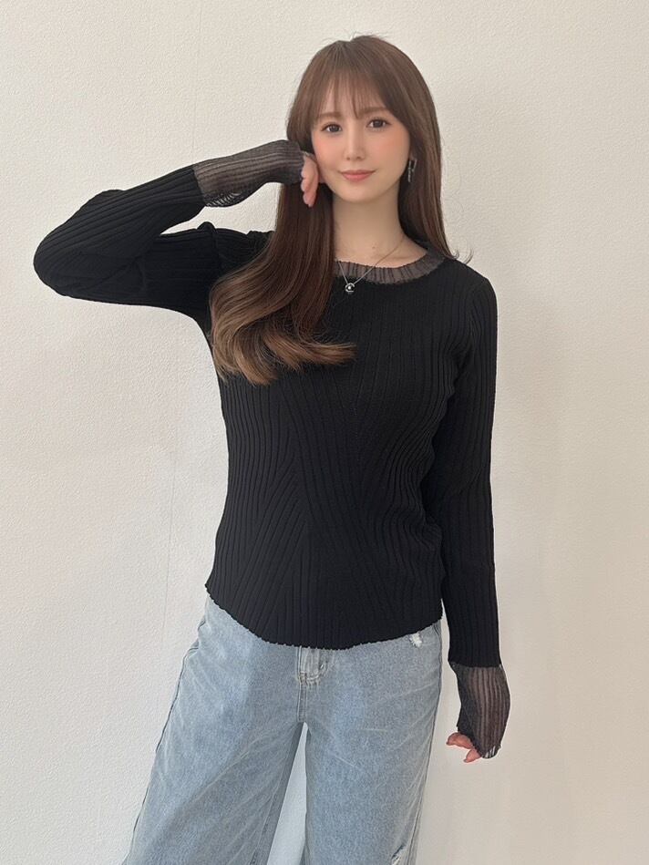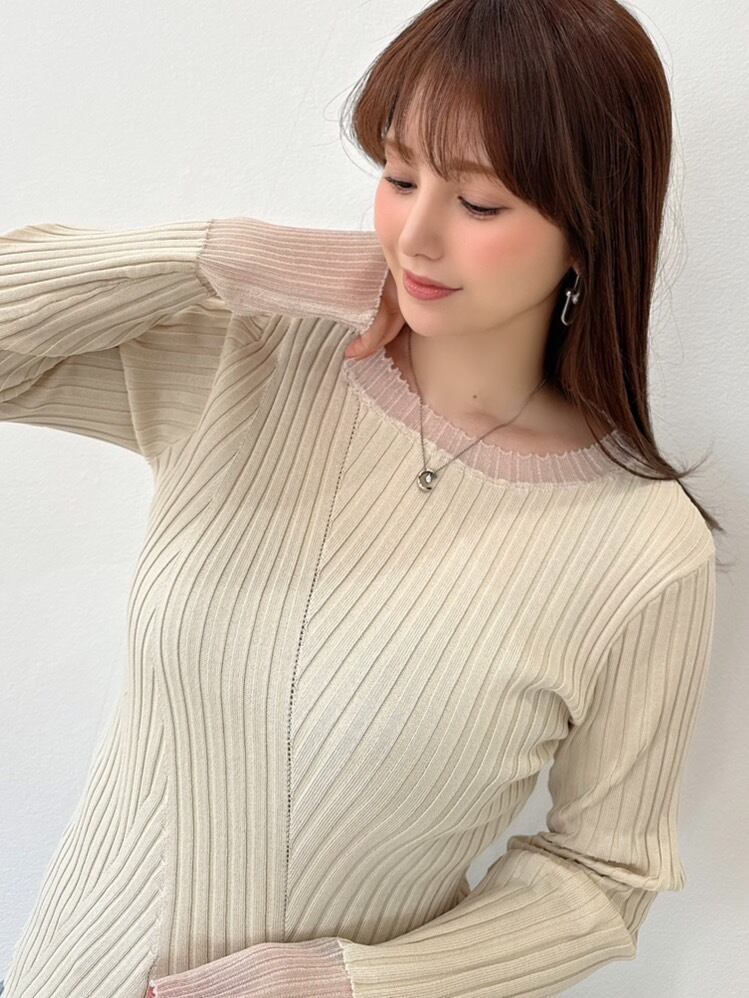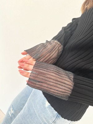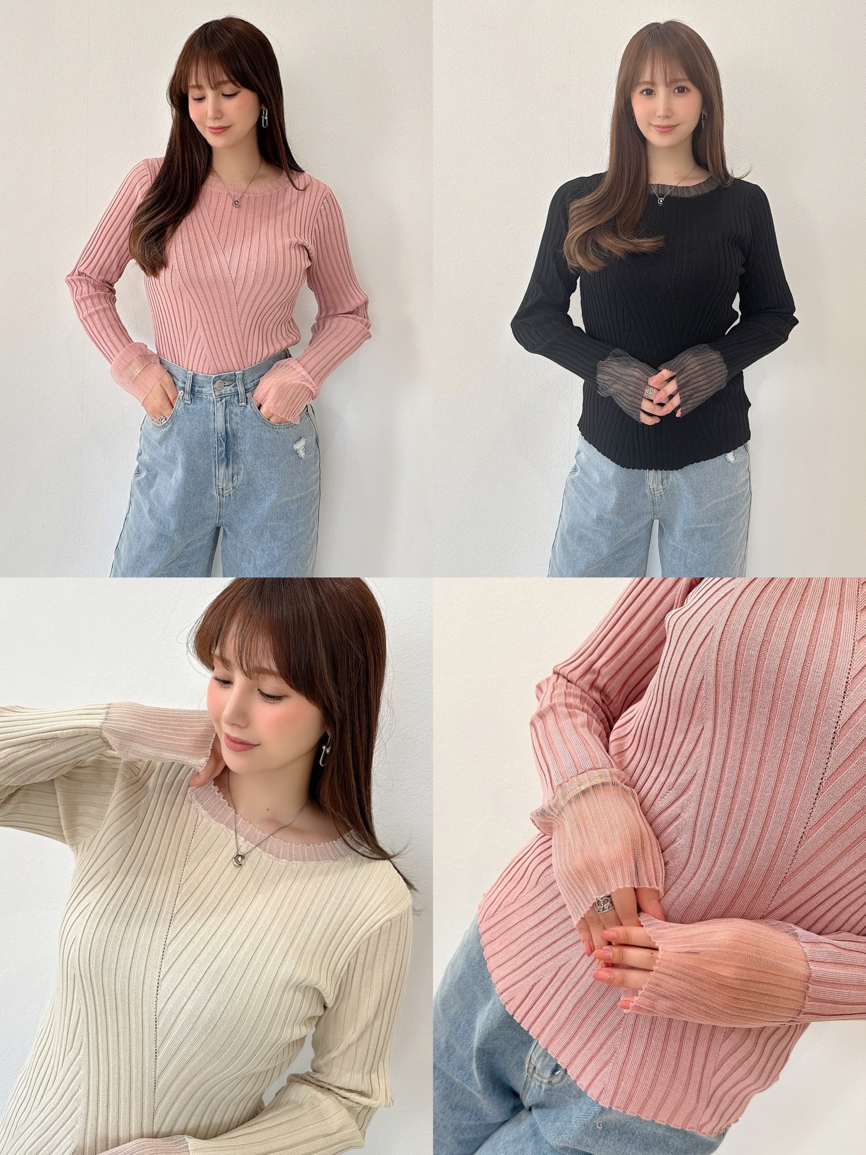 衿ぐりと袖口にさりげなく施されたシアー生地は